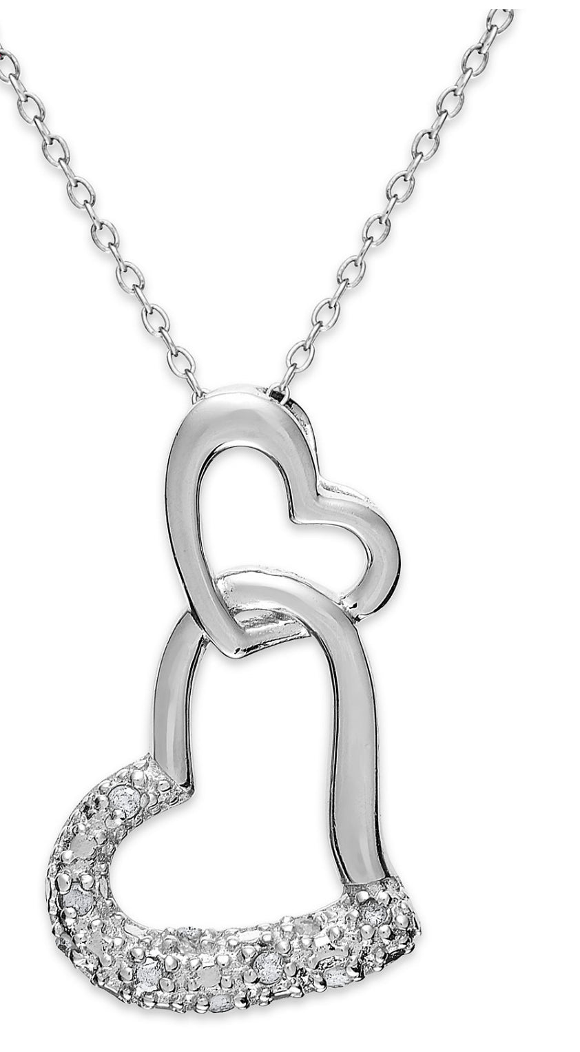 Diamond sterling silver two hearts silver necklace.